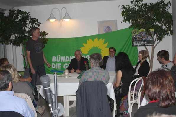 Daniel Renkonen referierte engagiert und sachkundig über die zahllosen Mängel des Wahnsinnsprojekts „Stuttgart 21“. Er zog die Zuhörer in Bahn mit Überlegungen der Grünen, wie wir noch mit einem „blauen Auge“ aus diesem von der Vorgängerregierung eingebrockten „Schlamassel“ herauskommen könnten. Seine Botschaft: Die Volksabstimmung ist nicht aussichtslos. Dazu gehört aber, dass wir zur Wahl gehen müssen und unser Umfeld davon überzeugen, dass Wahlabstinenz nur den Befürwortern dient. Es hilft nur ein Tausendfaches „ja“ bei der Abstimmung. Jeder von uns ist gefordert in diesem Sinne zu werben.