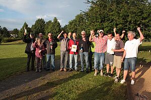 Und bei Sonnenschein übergaben dann Heinz Beck von der BIA und Steffen Zimmermann von den Grünen die Preise an die vier erstplatzierten Mannschaften. Nachdem die Sieger 2015 bereits ausgeschieden waren, gab es 2016 eine neue Siegermannschaft, die den begehrten Wanderpokal erhielt (und ihn nächstes Jahr verteidigen muss). Ein rundherum gelungener Nachmittag ging zu Ende. Gestärkt durch Speis und Trank, gechillt im Bürgergarten, nette Gespräche und heiß umkämpfte Punkte. Wir freuen uns auf nächstes Jahr.