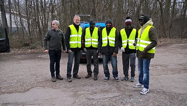 (v. l.: Michael, Steffen, Sainey, Mohammed, Amadou, und Saidi)