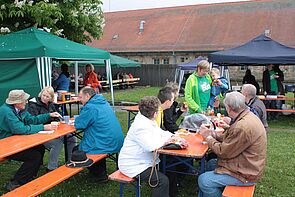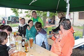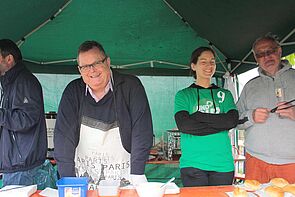 Die Grünen trugen mit der Ausgabe von Weißwürsten und Roten, Kaffee und Kuchen sowie einer von der Grünen Jugendgruppe organisierten Cocktail-Bar mit alkoholfreien Getränken bei.