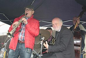Selbstverständlich war auch wieder auf die anderen Künstler Verlass, ohne die unser Fest nur nur eine langweilige Hocketse wäre. Von hier aus herzlichen Dank an die Jazzer des "Acustic Quartett", die in der Zeit von 11.00 bis 14.00 Uhr für tolle Unterhaltung sorgten. Und ebensolchen Dank an die Rockmusiker "BothWays", die danach anschließend bis zum Ende der Veranstaltung eine andere Musikrichtung -aber ebenso gekonnt- zum Besten gaben. Beim stillen Genießen der Musik, merkte mancher Zuhörer erst spät, wie sein Weizenbier dank des Wetters langsam aber sicher zum "Radler" wurde.