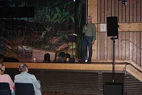 Nach einer kurzen Ansprache und Begrüßungsrede unseres Fraktionsvorsitzenden und Vorstandsmitglied Michael Klumpp, legte Christoph Sonntag in seiner unvergleichlichen Art los und erinnerte daran, dass er bereits vor 30 Jahren, anlässlich unseres damaligen Jubiläums, auf dieser Bühne stand und die Themen, die er damals angeprangert hatte, leider auch heute noch oder wieder aktuell seien.