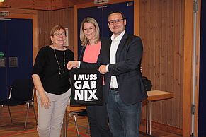 Selbstverständlich machte er sich auch über uns Veranstalter lustig indem er unseren vor der Stadthalle aufgebauten Grill ins Visier nahm. Dort würden wir "Grüne" begeistert die "Roten" grillen - auch gerne, bis diese "schwarz" würden. Dies konnte den Appetit auf unsere roten Würste in der Halbzeitpause aber nicht verderben, zumal durch die Familie Pfuderer auch köstliche Steillagen Weine, direkt von unserem Hausberg, dem Hohenasperg angeboten wurden.
